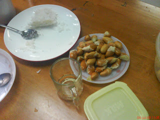 Ni la udang yang bakal dimasak. Bersihkan ia. Pastu kite rebuskan dengan air yang sedikit je. Usth kata jangan rebus skali ngn bahan yang telah ditumiskan. Nanti x sedap. So asingkan rebusan udang dengan bahan tumis.
